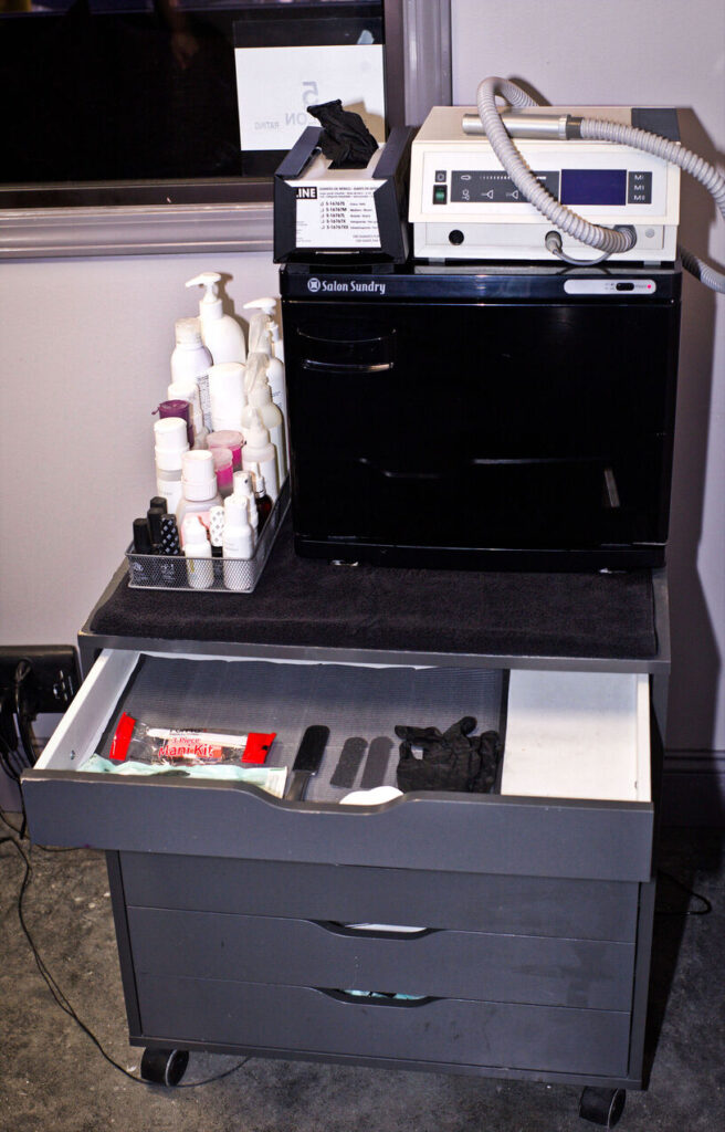 At Hygeian Hand and Foot Refinery, the soakless pedicure takes place while you fully reclined in a zero-gravity massage chair. No luxury lost. The benefits of a soakless pedicure just might make up for not having a foot spa full of jetted bubbles and bacteria.
