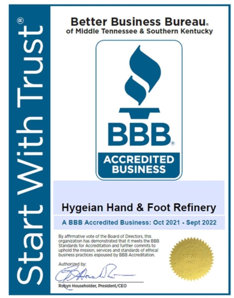 I, as the owner of Hygeian Hand and Foot Refinery, take my business extremely serious. Anyone who works with me on my team will be required to take advanced education to create more providers of these safe and unique services. We will strive to be the best we can be in our industry and raise the bar on what should be the standard of hand and foot care everywhere.
